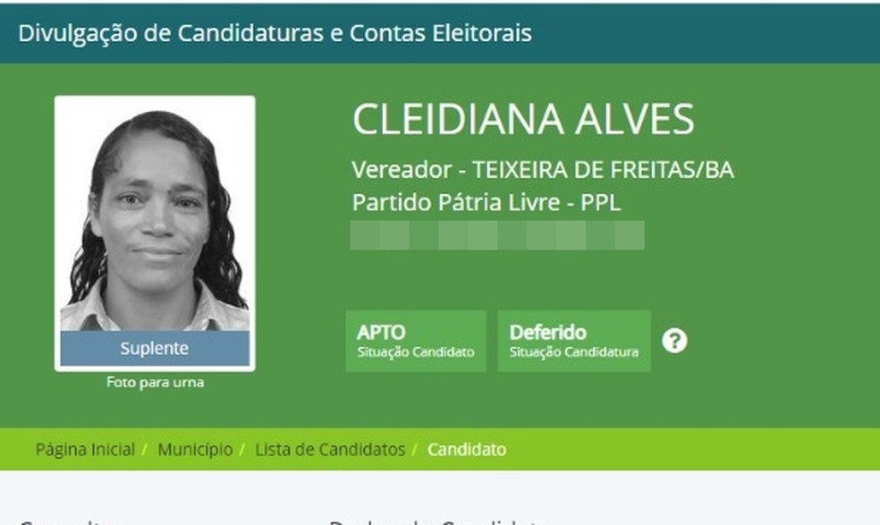 No site de Divulgação de Candidaturas e Contas Eleitorais do Tribunal Superior Eleitoral, o nome dela consta como suplente, mas ela alega que nunca tomou posse como vereadora.