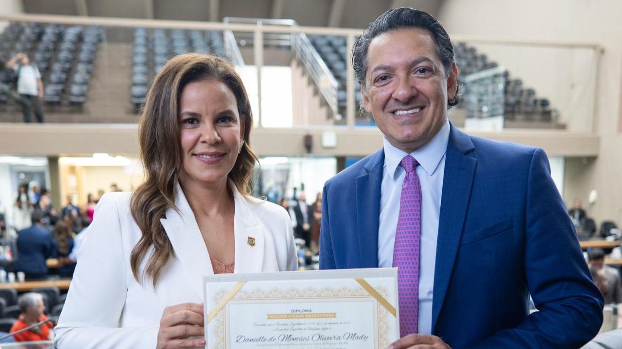 O deputado estadual Felipe Souza indicou como homenageada a superintendente regional da Polícia Federal no estado, Danielle Mady, em reconhecimento à sua trajetória e à contribuição da delegada para a segurança pública no Amazonas. Danielle Mady entrou recentemente para a história ao se tornar a primeira mulher amazonense a ocupar o cargo de superintendente regional da Polícia Federal no estado.