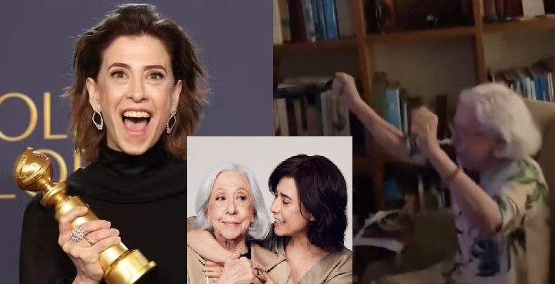 Um vídeo mostra Fernanda Montenegro, de 95 anos, vibrando com a conquista da filha como melhor atriz em filme de drama, por sua atuação em ‘Ainda estou aqui’.