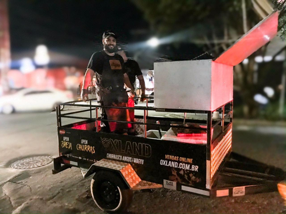 Com direito a carro de som e churrasqueira, a equipe da Oxland dá uma prévia das diversas estações de carne que serão servidas no evento pioneiro.