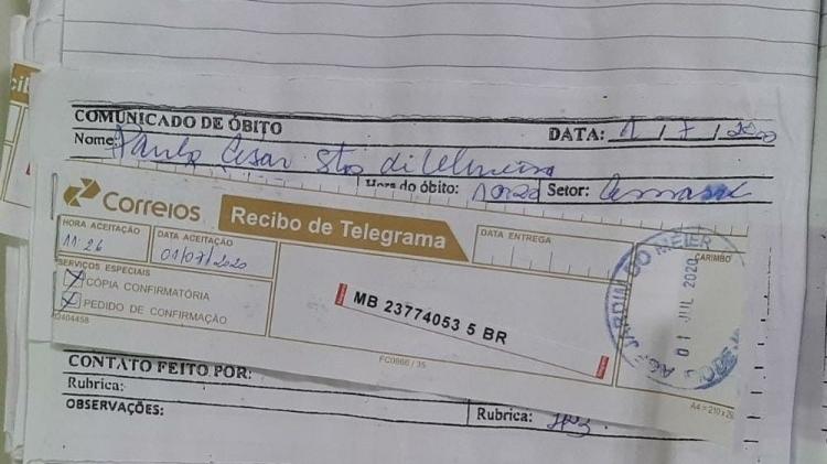 Segundo a direção do hospital, como não conseguiram contato por telefone, eles enviaram um telegrama para a família do paciente no mesmo dia do óbito.