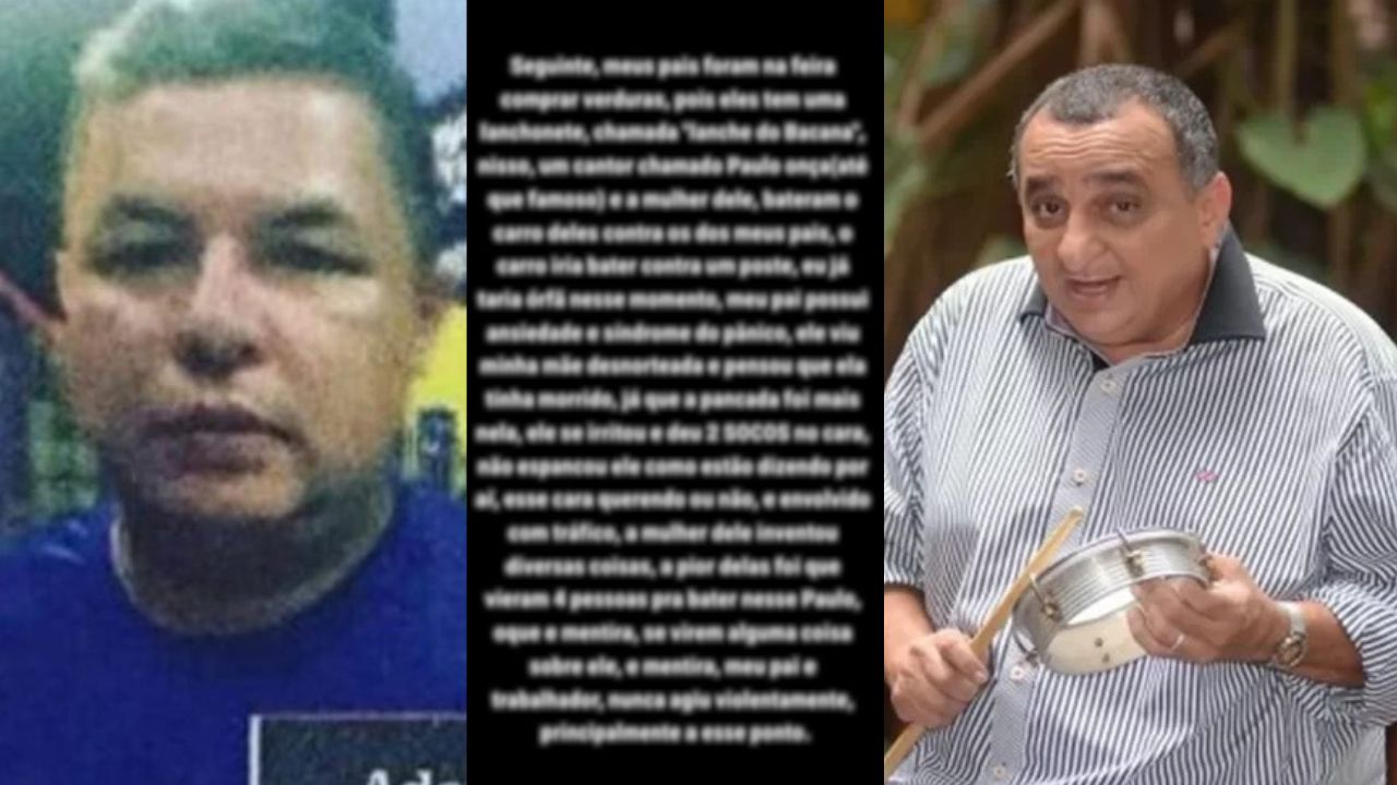 “Seguinte, meus pais foram na feira comprar verduras, pois eles tem uma lanchonete, chamada ‘Lanche de Bacana”, nisso, um cantor chamado Paulo onça(até que famoso) e a mulher dele, bateram o carro deles contra os dos meus pais, o carro iria bater contra um poste, eu já taria órfã nesse momento, meu pai possui ansiedade e síndrome do pânico, ele viu minha mãe desnorteada e pensou que ela tinha morrido, já que a pancada foi mais nela, ele se irritou e deu 2 SOCOS no cara, não espancou ele como estão dizendo por aí, esse cara querendo ou não, e envolvido com tráfico, a mulher dele inventou diversas coisas, a pior delas foi que vieram 4 pessoas pra bater nesse Paulo, oque e mentira, se virem alguma coisa sobre ele, e mentira, meu pai e trabalhador, nunca agiu violentamente, principalmente a esse ponto.”.