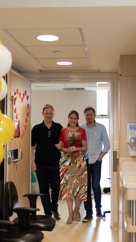 A psicóloga Paula Schuchmann Cukier, de 31 anos, e o engenheiro Daniel, de 40, realizaram sua união no dia 28 de dezembro no Hospital Albert Einsten, em São Paulo. O casamento realizado em tão pouco tempo, contou a ajuda da família, onde puderam contar a presença de uma fotógrafa, alianças e uma singela decoração.