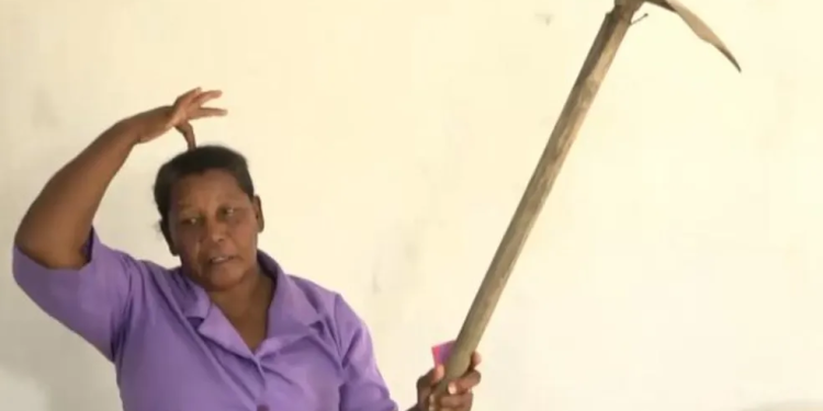 A mulher se negou e teve as mãos amarradas com um fio; o homem ainda tentou passar o fio pelo pescoço da vítima. Ele então passou a agredir a mãe com uma enxada. “Você vende a sua casa e me dá a parte dos meus bens que você tem que me dar, senão eu te mato”, disse a mãe sobre o que o filho teria dito durante a agressão.