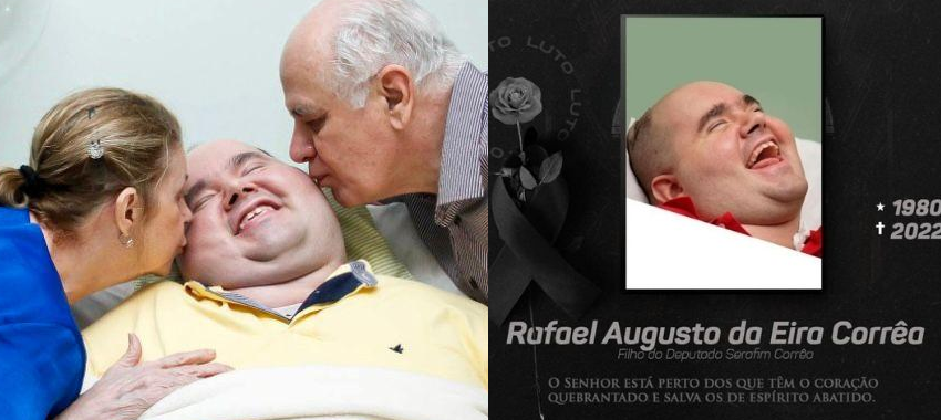 Rafael faria 42 anos em julho. Chamado carinhosa de “Rafa”, ele nasceu com leocodistrofia de origem genética, uma doença autoimune. No sábado (3), teve uma parada cardíaca, vindo a falecer por volta das 21h deste domingo.