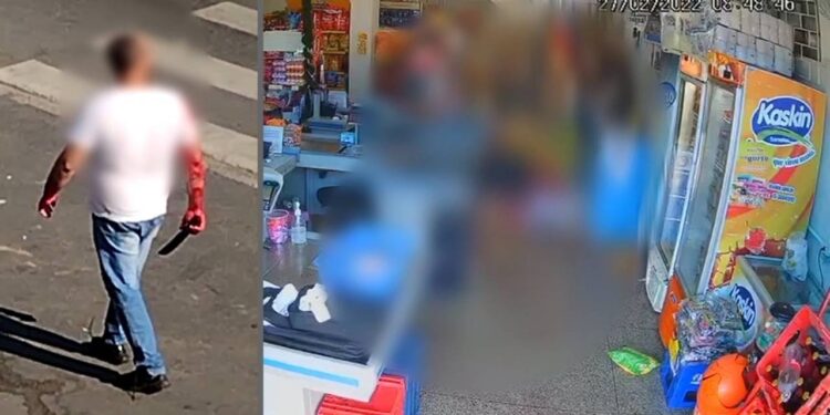 Na gravação, Miranda é visto entrando no mercado já ensanguentado. Na sequência, o filho dele aparece segurando um facão andando atrás do pai. Clientes e funcionários saíram correndo com medo.