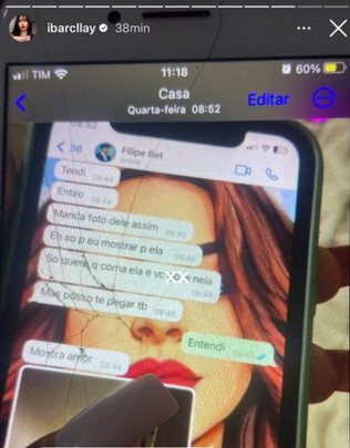 Segundo a influencer, Filipe teria insinuado que Barclay era garota de programa. Ela chegou a gravar a tela e mostrar as conversas com ele.