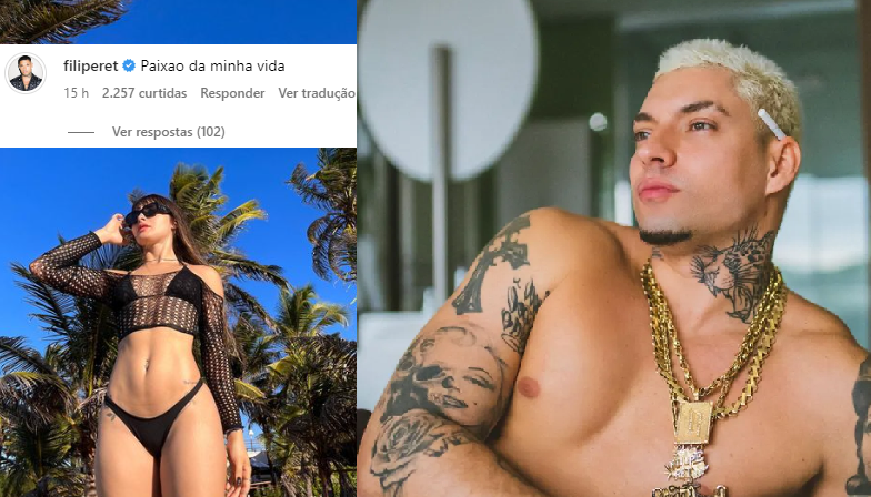 Agora, a gata que é natural de Nova Olinda do Norte, interior do Amazonas, postou um clique de biquíni em Fortaleza, onde o rapper fez show. Antes, ela também foi flagrada acompanhando apresentação dele em Belém, no Pará, da onde a mãe de Filipe é natural.