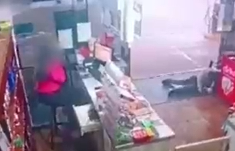 A vítima cai ao chão e em seguida os bandidos fugiram. A mulher que está no caixa e outras duas pessoas aparecem para tentar socorrer Ernesto.