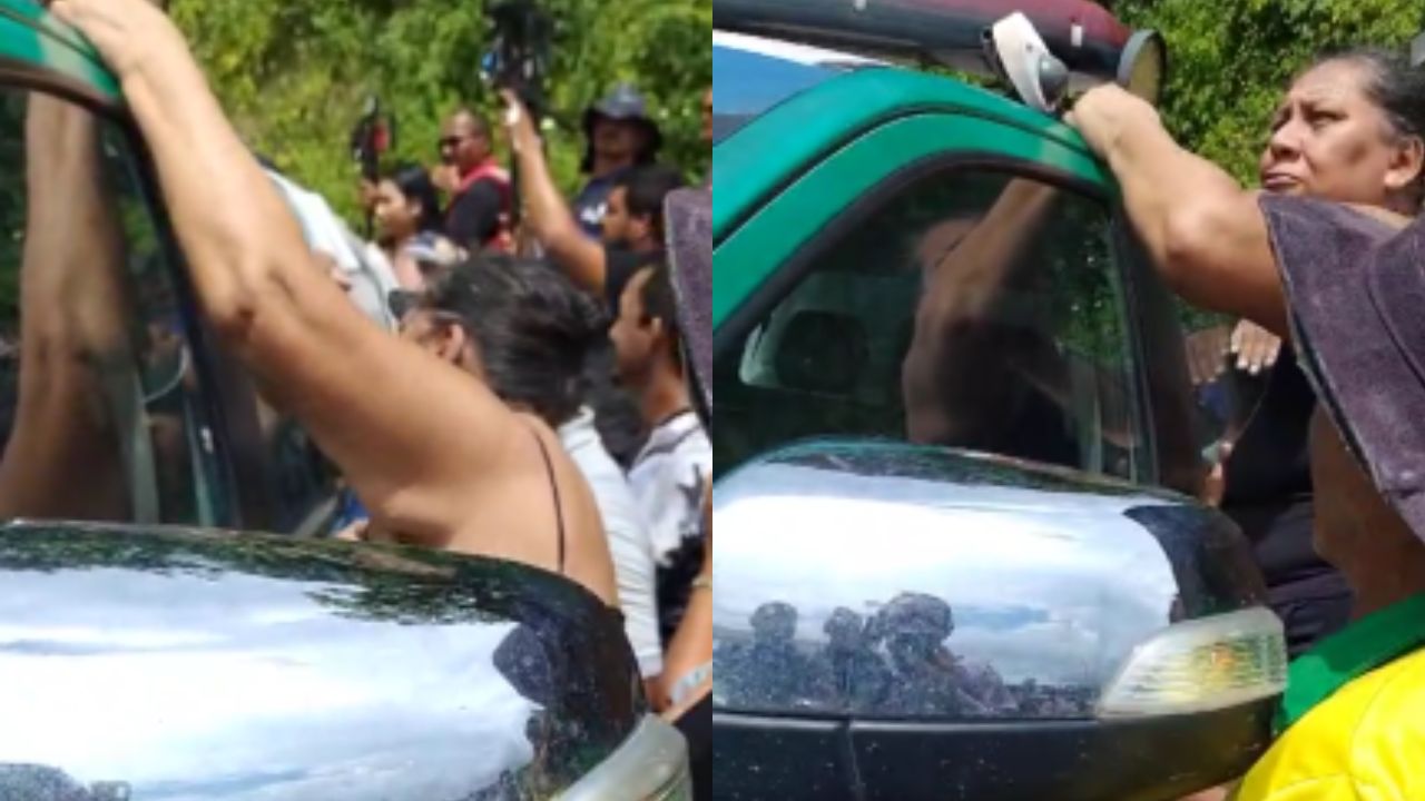 No vídeo registrado por colegas da imprensa, a ‘fofoqueira’ aparece subindo na viatura da Polícia Militar do Amazonas (PMAM) quando foi advertida pelo agente da guarnição por fazer isso.