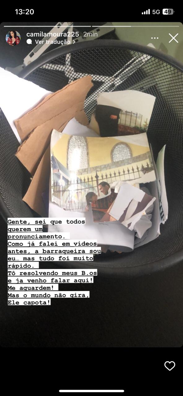 No stories, ela fez uma publicação com a música “Chico”, que fala sobre a traição sofrida por Luísa Sonza. A foto tem uma mala e ela questionou o público se o objeto era dela ou do “Calabreso”, forma que o público se refere a Lucas desde a briga com Davi.