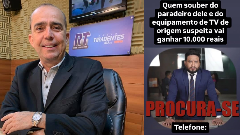 “Quem souber do paradeiro dele e do equipamento de TV de origem suspeita vai ganhar R$10 mil”, anunciou Tiradentes, que já se envolveu em brigas com o comunicador por divergências políticas.