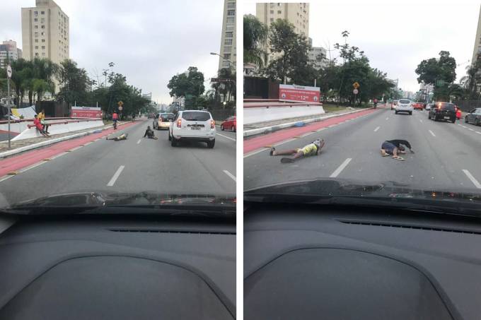 São Paulo – Imagens que têm circulado na internet desde terça (17), em que aparecem alguns homens deitados no asfalto em uma via na cidade de São Paulo, alertam sobre uma possível estratégia de criminosos para realizar assaltos. A foto teria sido tirada em uma via na região da Vila Mariana, nas proximidades da estação de metrô Ana Rosa. Até o momento, a publicação teve mais de 102 000 compartilhamentos na rede social e mais de 7 900 curtidas.