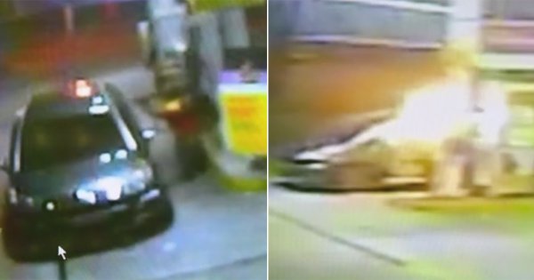 Logo depois, o frentista volta e joga álcool sobre o Luis Romário, que atira, errando o alvo. Em seguida, as chamas tomam conta do carro.