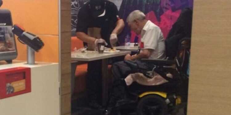 MUNDO| Uma foto de um funcionário do McDonald’s ajudando um idoso com deficiência a se alimentar, viralizou nas redes sociais nesta semana. A imagem ganhou repercussão mundial após ser compartilhada por Destiny Carreno que lanchava em restaurante da franquia em Chicago, Illinois.
