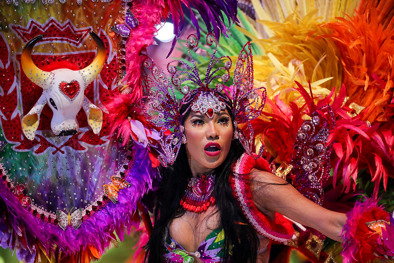 PARINTINS (AM) – Focando na diversidade, o Garantido levou a comunidade LGBTQIAPN+ na noite deste sábado (1º) com a porta-estandarte Livia Christina, de apenas 23 anos. Assumidamente lésbica, ela surgiu com todas as cores do arco-íris, símbolo da diversidade, na indumentária.