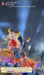 A ex-bbb e influenciadora amazonense Vivian Amorim, foi prestigiar o evento e exaltou os bois chegando na avenida.