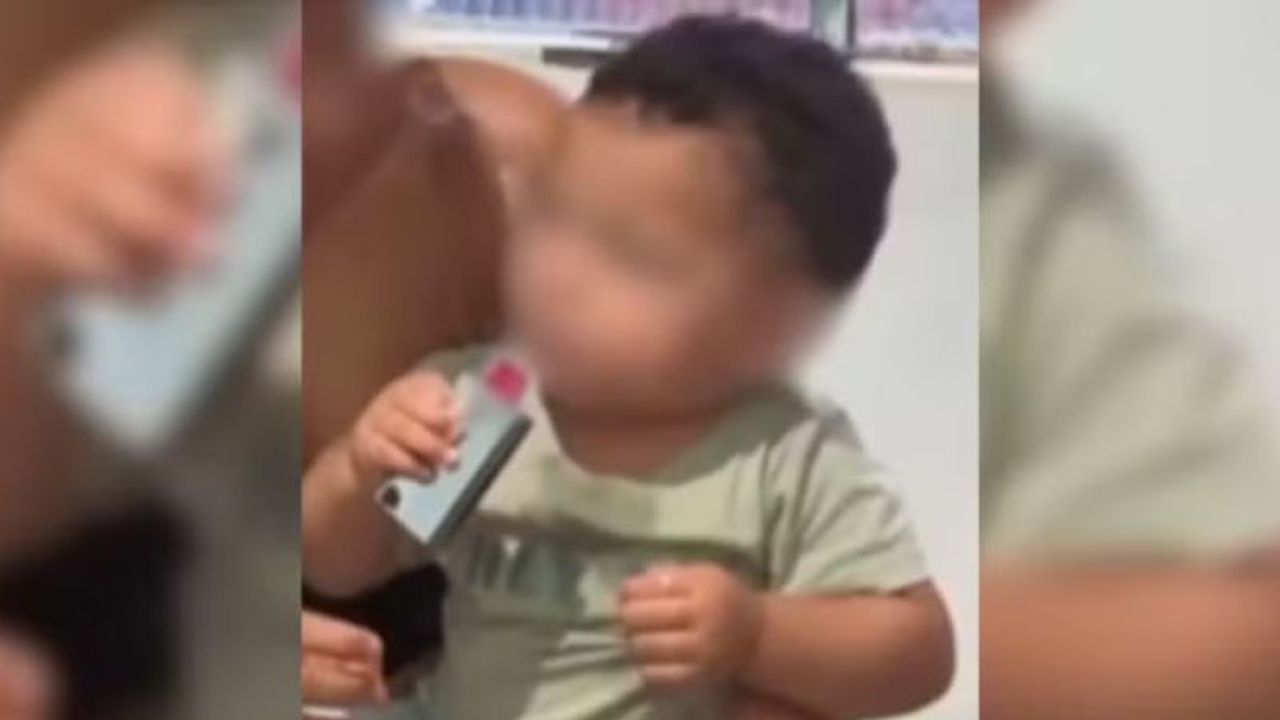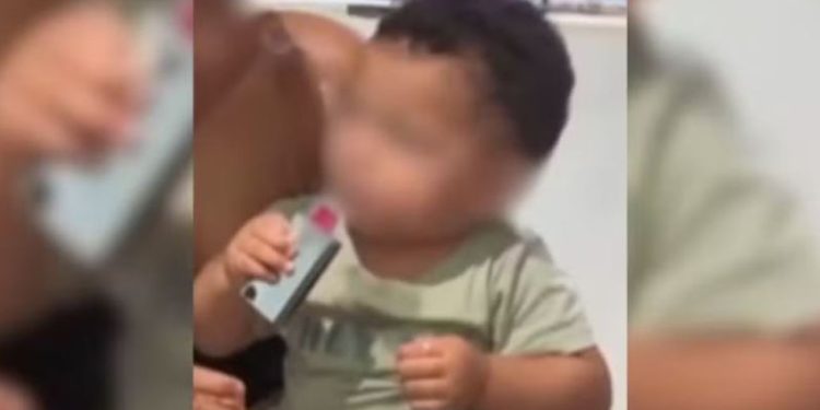 Nas imagens, que foram divulgadas nas próprias redes sociais da jovem, a criança coloca o dispositivo na boca e começa a sugar, inalando fumaça. Ao ver que o menor estava tossindo, ela começa a rir.