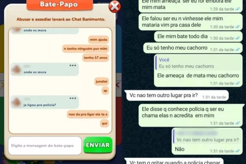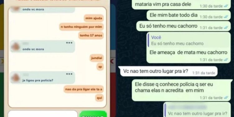 Conforme expõem prints divulgados pelo G1, a jovem afirma no chat que não pode acionar a Polícia. Já no WhatsApp, a adolescente relatar ser agredida todos os dias. “Ele me ameaça, se eu for embora ele me mata. Ele me bate todo dia”, escreveu.