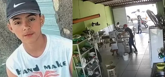 A ação foi flagrada por uma câmera de segurança do estabelecimento. As imagens mostram que a vítima está agachada quando o criminoso dispara contra ele. O adolescente cai no chão e o atirador sai do estabelecimento tranquilamente.