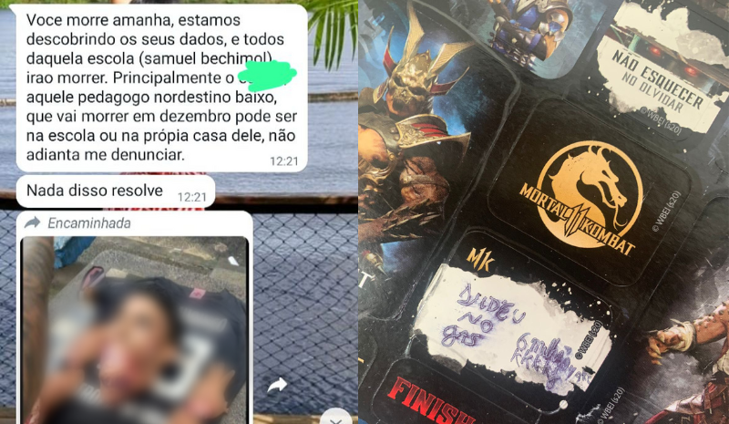 O celular dele foi apreendido e de acordo com a delegada Juliana Tuma, titular da unidade especializada, o jovem ainda usava alguns chips diferentes para mandar mensagens para alunos e professores, inclusive de cunho xenofóbico. Em uma das mensagens obtidas pela polícia, ele diz que “aquele pedagogo nordestino baixo” iria morrer em dezembro.