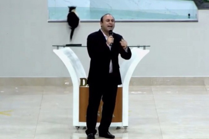O pastor Daniel Leite não percebeu a presença do gato. Após a pregação, integrantes da banda entraram no palco e tentaram saber o que aconteceu com o felino.