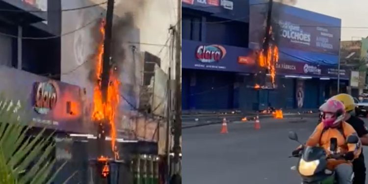 A área foi isolada e internautas compartilharam vídeos das chamas. Funcionários da Amazonas Energia foram ao local para avaliar os danos.