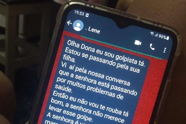 Tanto que na publicação, o ladrão escreve: “Sou golpista tá, estou se passando pela sua filha. Vi pela nossa conversa que a senhora está passando por muitos problemas de saúde. Então, eu não vou te roubar, ta bom, a senhora não merece levar esse golpe. A senhora é uma mãe maravilhosa com certeza”.