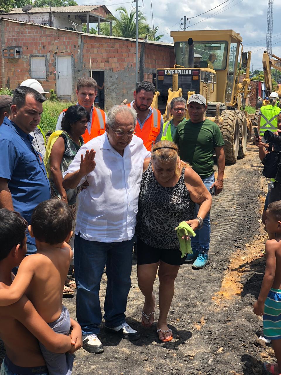 Santa Etelvina – O governador também esteve na Comunidade Vitória Régia, no bairro Santa Etelvina. Com infraestrutura zero, o local está recebendo serviços de terraplanagem, drenagem (superficial e profunda), asfalto, meio-fio e sarjeta.
