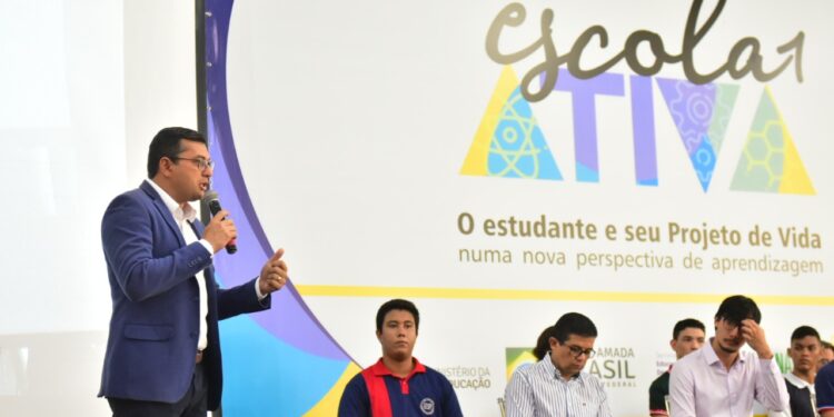 MANAUS/AM – O governador do Amazonas, Wilson Lima, lançou, nesta segunda-feira (09/03), o programa “Escola Ativa”, que será aplicado em 27 escolas de tempo integral, sendo dez em Manaus e 17 no interior, atendendo 950 professores da rede estadual e mais de 11,3 mil alunos do ensino médio. Durante o lançamento, que ocorreu no Centro de Convenções Canaã, no bairro Petrópolis, zona sul de Manaus, Wilson Lima destacou os principais objetivos do “Escola Ativa”.