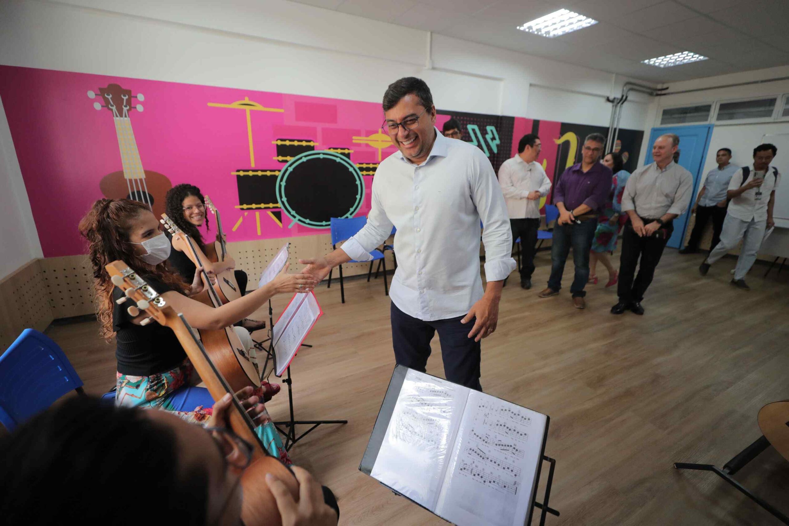 “Estou muito emocionado porque nós estamos em uma área muito carente, que é a zona leste, uma área muito populosa, e eu vim da escola pública e não tive oportunidade de frequentar um centro como esse. Hoje trabalho para que as pessoas possam ter aquilo que não tive na minha infância e juventude. Isso me deixa muito emocionado porque é uma estrutura da rede pública de ensino, não é particular, é do povo do estado do Amazonas”, declarou o governador, sob forte aplauso de alunos e professores.