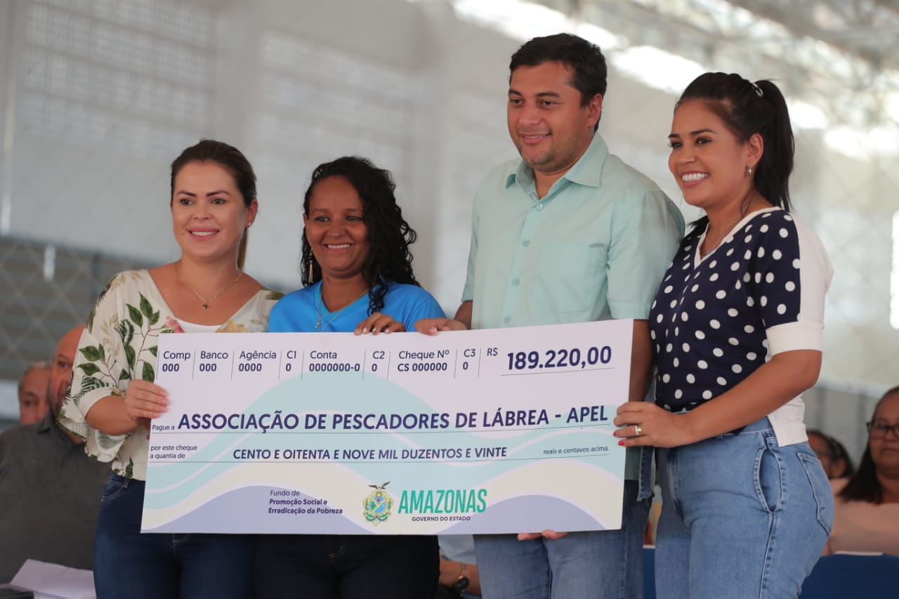 Benefício aos pescadores – Na solenidade de inauguração do Ceti, Wilson Lima também fez a entrega de um cheque simbólico no valor de R$ 189 mil à Associação de Pescadores de Lábrea (Apel), que foi selecionada através do edital 003/2017, do FPS.