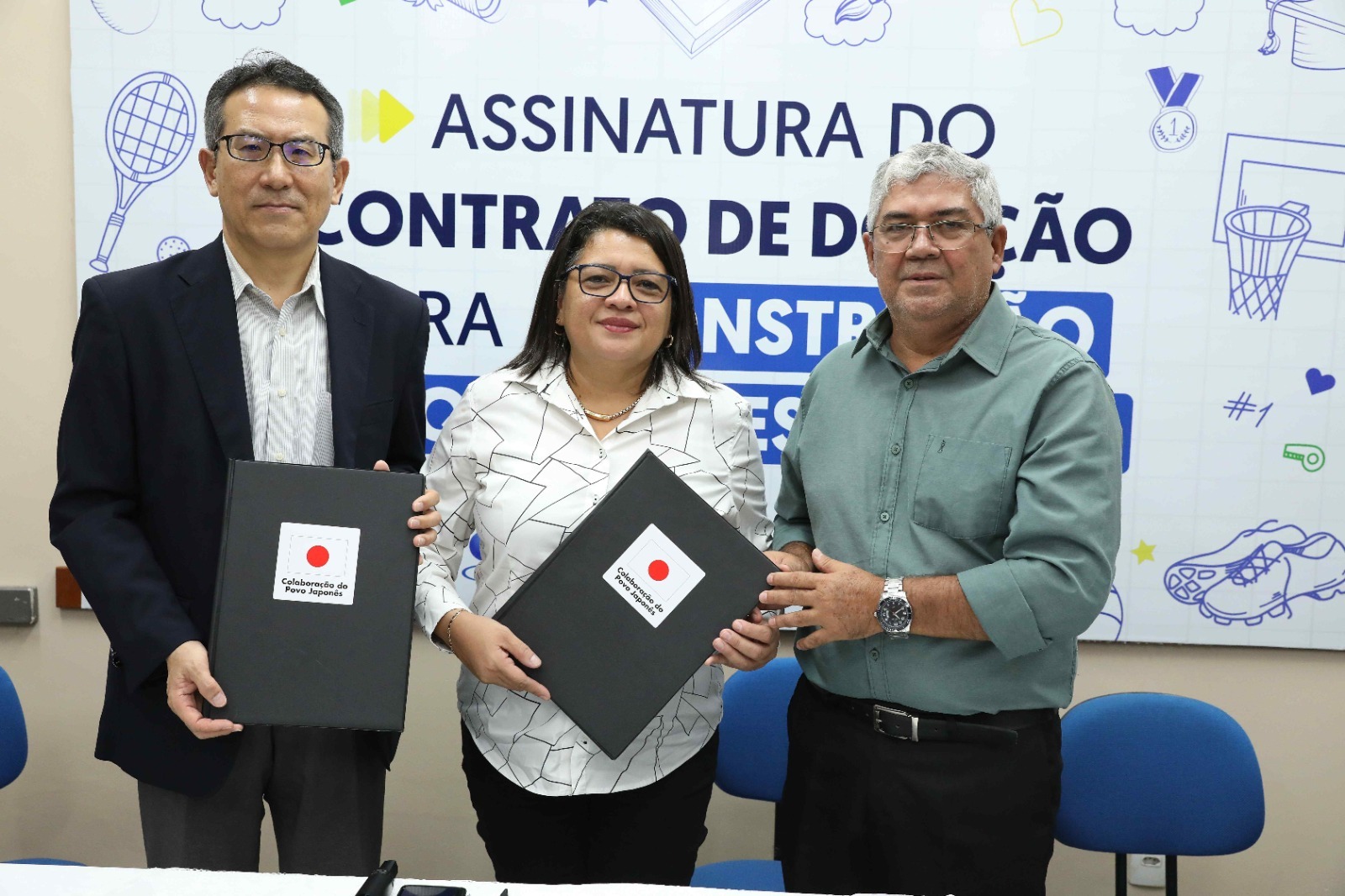 Nesta sexta-feira (20/10), O Governo do Amazonas, por meio da Secretaria de Estado de Educação e Desporto Escolar, e o Consulado Geral do Japão em Manaus assinaram o contrato de doação de recursos para a construção de uma quadra esportiva coberta na Escola Estadual (EE) Cívico-Militar Professor Nelson Alves Ferreira, no São Lázaro, zona sul da capital. No total, as obras devem custar, aproximadamente, R$650 mil, sendo R$373 mil repassados pelo Consulado e R$277 mil pela Secretaria de Educação.
