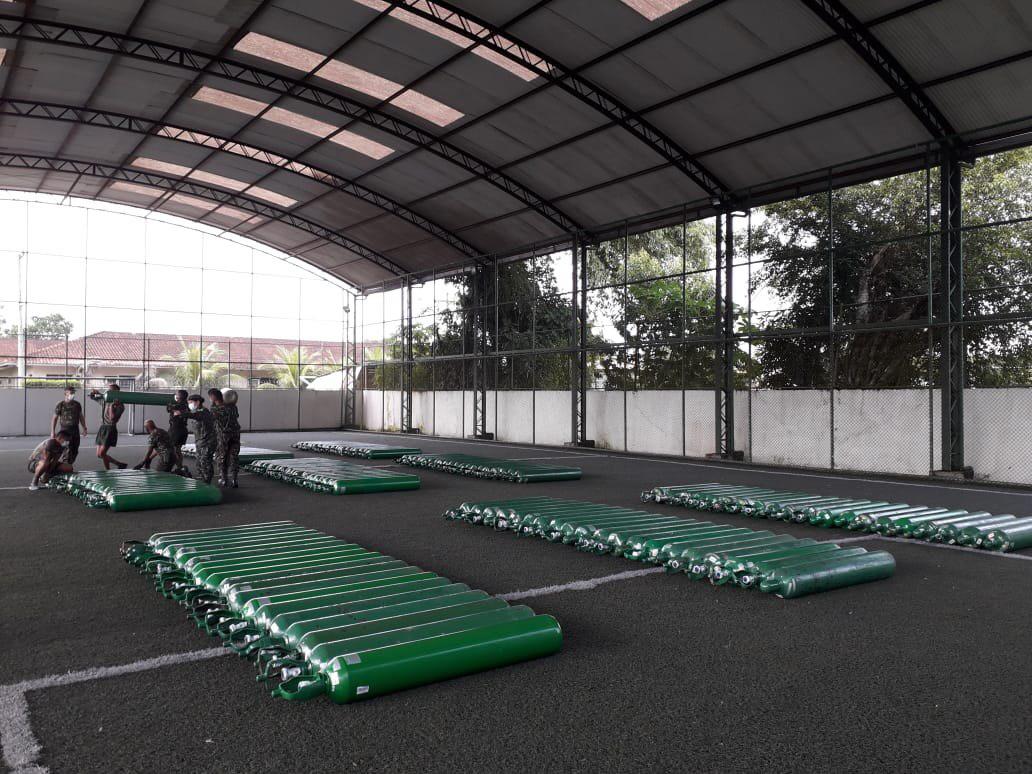 MANAUS – AM | O Governo do Amazonas entregou, neste domingo (03/05), com o apoio da Força Aérea Brasileira, 200 cilindros de oxigênio de 10m³ ao Hospital de Guarnição de Tabatinga (HGuT). A unidade também é referência para atendimento de média e alta complexidade para outros municípios do Alto Solimões e precisará realizar reparos na usina de oxigênio.