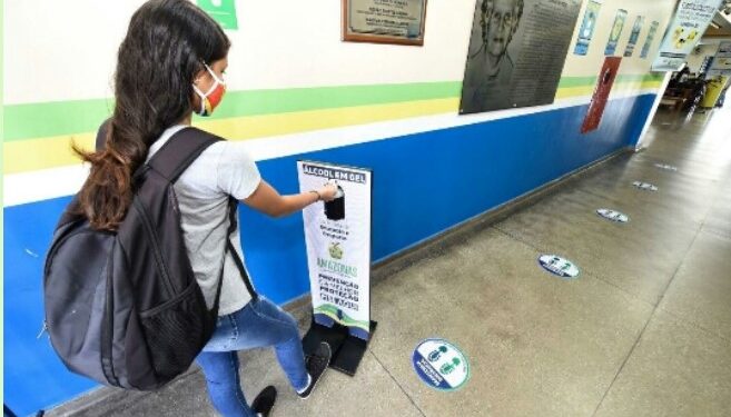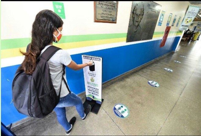 MANAUS-AM |O Governo do Amazonas, por meio da Secretaria de Estado de Educação e Desporto, iniciou a instalação de 650 totens de álcool gel e 16 mil dispensers de álcool gel e sabonete em todas as 598 escolas da rede pública estadual, visando o retorno às aulas presenciais. Os itens estão sendo colocados em pontos estratégicos das unidades para auxiliar na higienização correta das mãos de todos os integrantes da equipe escolar.