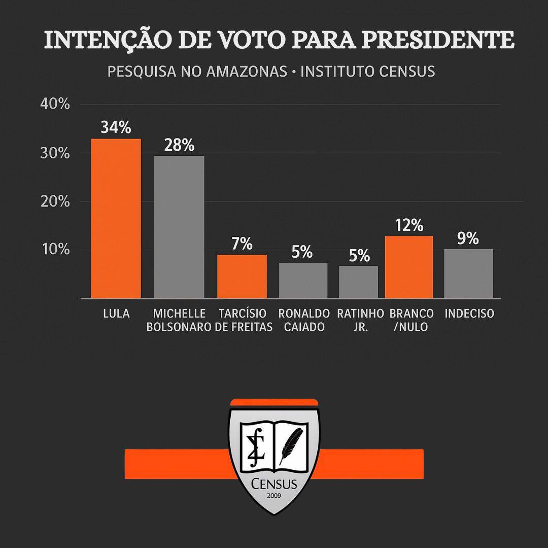 No contexto nacional, para a eleição presidencial de 2026, o ex-presidente Luiz Inácio Lula da Silva lidera no Amazonas, com 34% das intenções de voto — 43% considerando apenas os votos válidos. Michelle Bolsonaro vem em seguida, com 28%, representando 35% dos votos válidos. Outros nomes citados foram Tarcísio de Freitas (7%), Ronaldo Caiado (5%) e Ratinho Jr. (5%). Votos brancos e nulos totalizam 12%, e 9% dos participantes não souberam opinar.