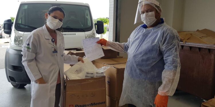 MANAUS-AM|Ao longo deste fim de semana, o Governo do Amazonas, por meio do Hospital Delphina Aziz, unidade referência para casos de Covid-19 no Estado, recebeu novas doações da iniciativa privada, que tem apoiado as medidas de combate à doença. Ao todo, foram entregues 3.410 máscaras, três mil pares de luvas, 300 óculos de proteção transparentes, 100 aventais descartáveis e 20 galões de cinco litros de sabonete líquido.