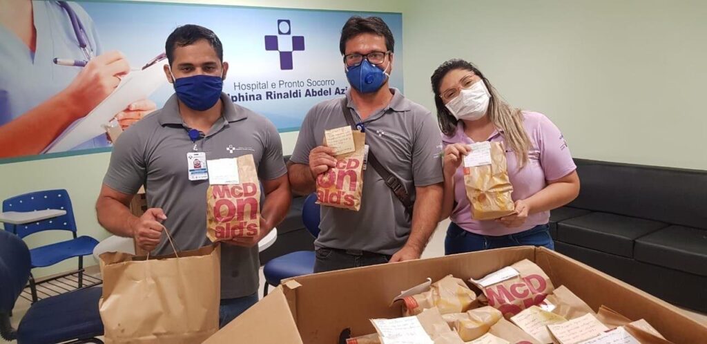 Reconhecimento – A Rede MC Donald’s Manaus fez a entrega de 60 lanches acompanhados de bilhetes de agradecimento aos profissionais da saúde, que estavam no plantão. A Rede de fast-food já havia realizado, anteriormente, a entrega de lanches aos profissionais atuantes na unidade hospitalar como forma de apoio aos serviços prestados por eles ao longo da pandemia de Covid-19 no Estado.