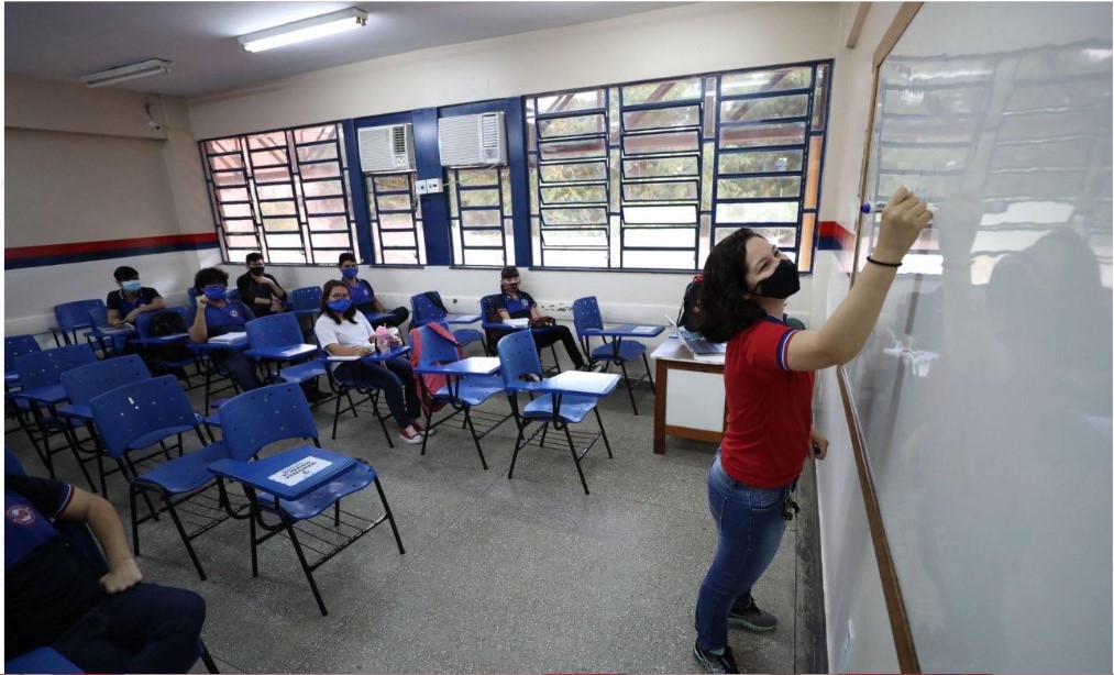 MANAUS-AM |O Governo do Estado retomou, nesta segunda-feira (10/08), as aulas presenciais em 123 escolas do Ensino Médio da rede pública estadual da capital, com a execução de todas as medidas de prevenção, conforme protocolo da Fundação de Vigilância em Saúde do Amazonas (FVS-AM), e com lotação das salas limitada a 50% da capacidade. Ao todo, 100 mil alunos retornam às salas de aulas de forma gradativa e escalonada.