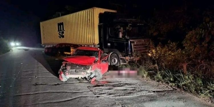 AMAZONAS – Um grave acidente matou Rosicley Marinho Parente, de 52 anos, na noite desta quarta-feira (6) , no KM 49 da rodovia AM-010. O choque entre o Gol e a carreta deixou o carro destruído.
