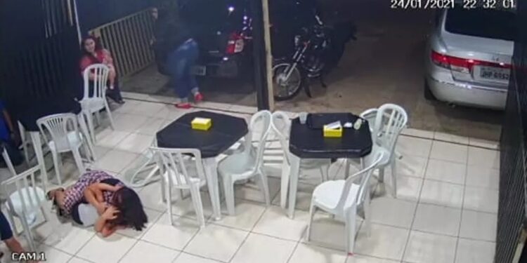 Nas imagens registradas por câmeras de segurança, é possível ver os assaltantes chegando ao local e um deles, armado, aborda um cliente, que reage. Nesse momento, teve início uma confusão. O homem com a arma atirou na direção de clientes. Em seguida, o comparsa levou celulares das vítimas. Rafaela conta que, após a confusão começar, achou que se tratava de um caso de acerto de contas, e não de um assalto.