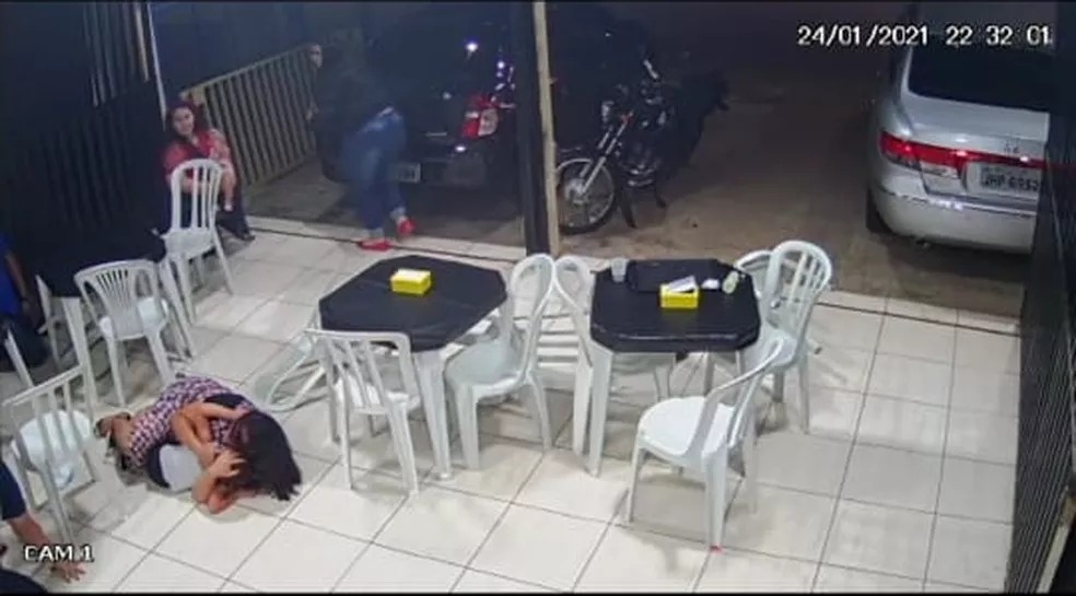 Nas imagens registradas por câmeras de segurança, é possível ver os assaltantes chegando ao local e um deles, armado, aborda um cliente, que reage. Nesse momento, teve início uma confusão. O homem com a arma atirou na direção de clientes. Em seguida, o comparsa levou celulares das vítimas. Rafaela conta que, após a confusão começar, achou que se tratava de um caso de acerto de contas, e não de um assalto.
