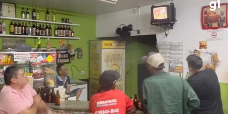 Na imagem pode-se ver alguns homens sentados no balcão do estabelecimento acompanhando a trama. “Cadê a tomada? Alguém desliga a TV?! Pantanal é sucesso por aqui”, brinca com os colegas.