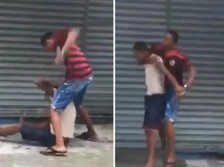 O agressor chega a dar outros golpes contra a cabeça da vítima e um chute. Em um segundo vídeo, é possível ouvir risos de uma menina debochando da situação e pedindo para os amigos correrem. Um dos envolvidos chega a jogar uma pedra na direção da vítima. Os rapazes deixam o local rindo das agressões.