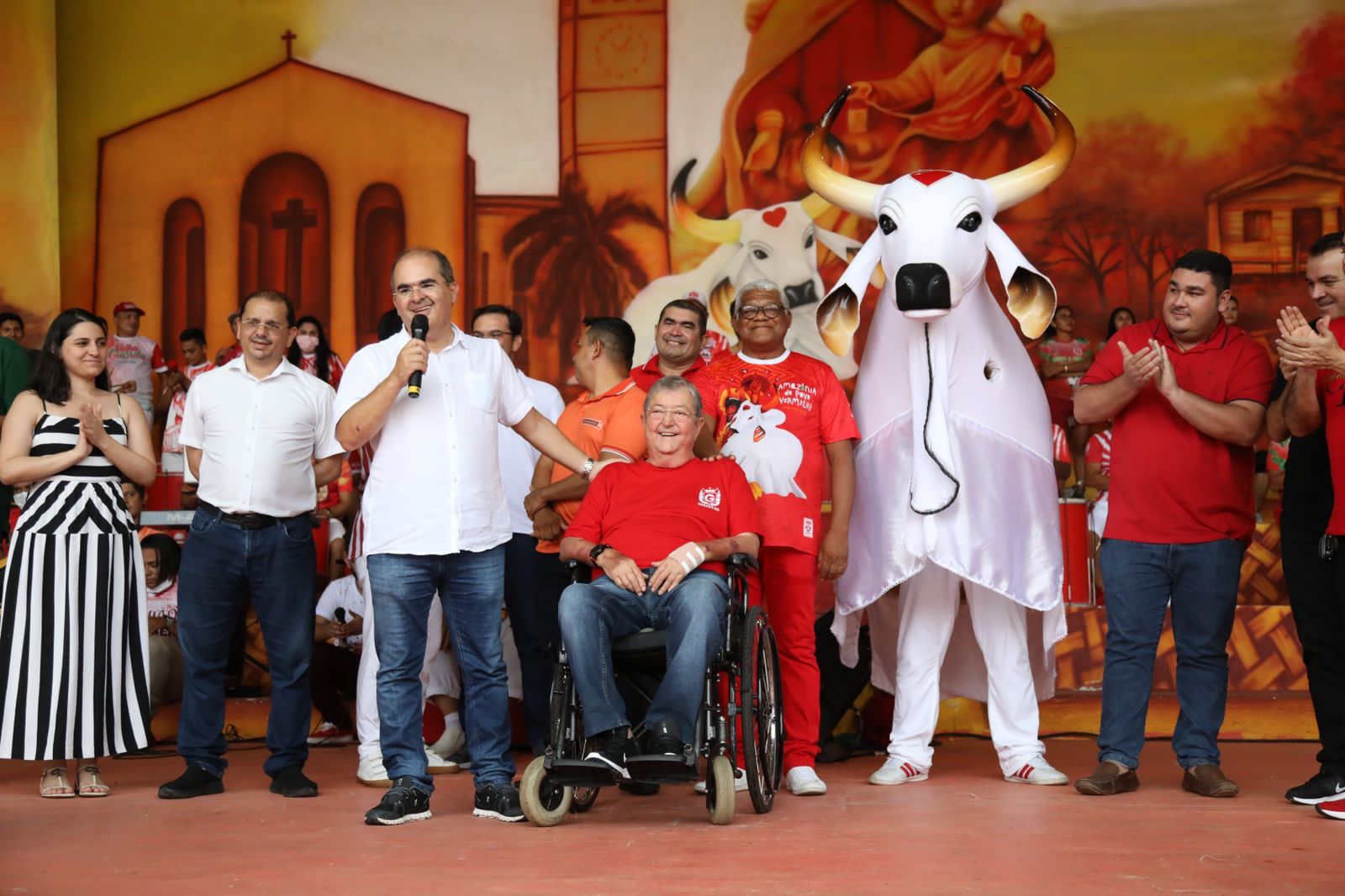 Durante sua passagem pelo município, Luis Alberto, que esteve acompanhado de seus irmãos e diretores da Samel, Ricardo e Hiram Nicolau; do diretor médico da instituição, Dr. Teodoro Rogério Ozores; do prefeito do município, Bi Garcia; e do presidente da Maná Produções, André Guimarães; visitou o curral do Boi Caprichoso, onde assinou, junto aos membros da diretoria Jender Lobato e Karu Carvalho; e na presença dos itens oficiais Edmundo Oran (apresentador), Patrick Araújo (levantador de toadas) e Marcielle Albuquerque (cunhã-poranga); o contrato, recebendo, em seguida, uma homenagem especial.