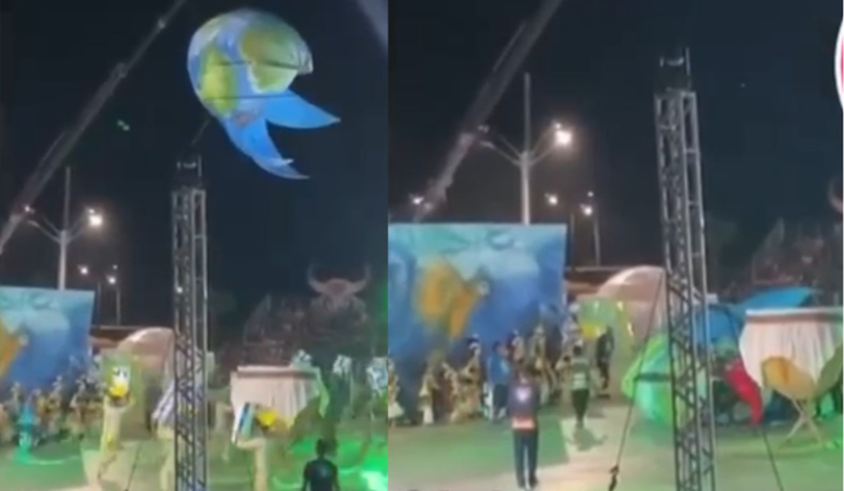 Segundo o Corpo de Bombeiros Militar do Amazonas (CBMAM), a alegoria estava suspensa por um caminhão munck e a dançarina despencou de, aproximadamente, cinco metros de altura.