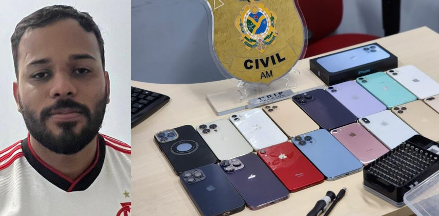 MANAUS (AM) – O hacker identificado como Irlan Rodrigues dos Santos, de 24 anos, foi preso em flagrante nesta segunda-feira (6) com 16 celulares, entre eles iPhones. Segundo policiais do 1º Distrito Integrado de Polícia (DIP), ele era responsável por desbloquear os aparelhos para uma facção criminosa.