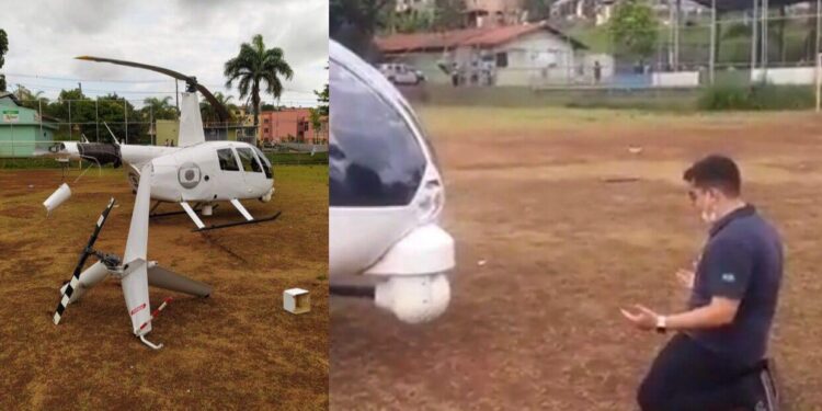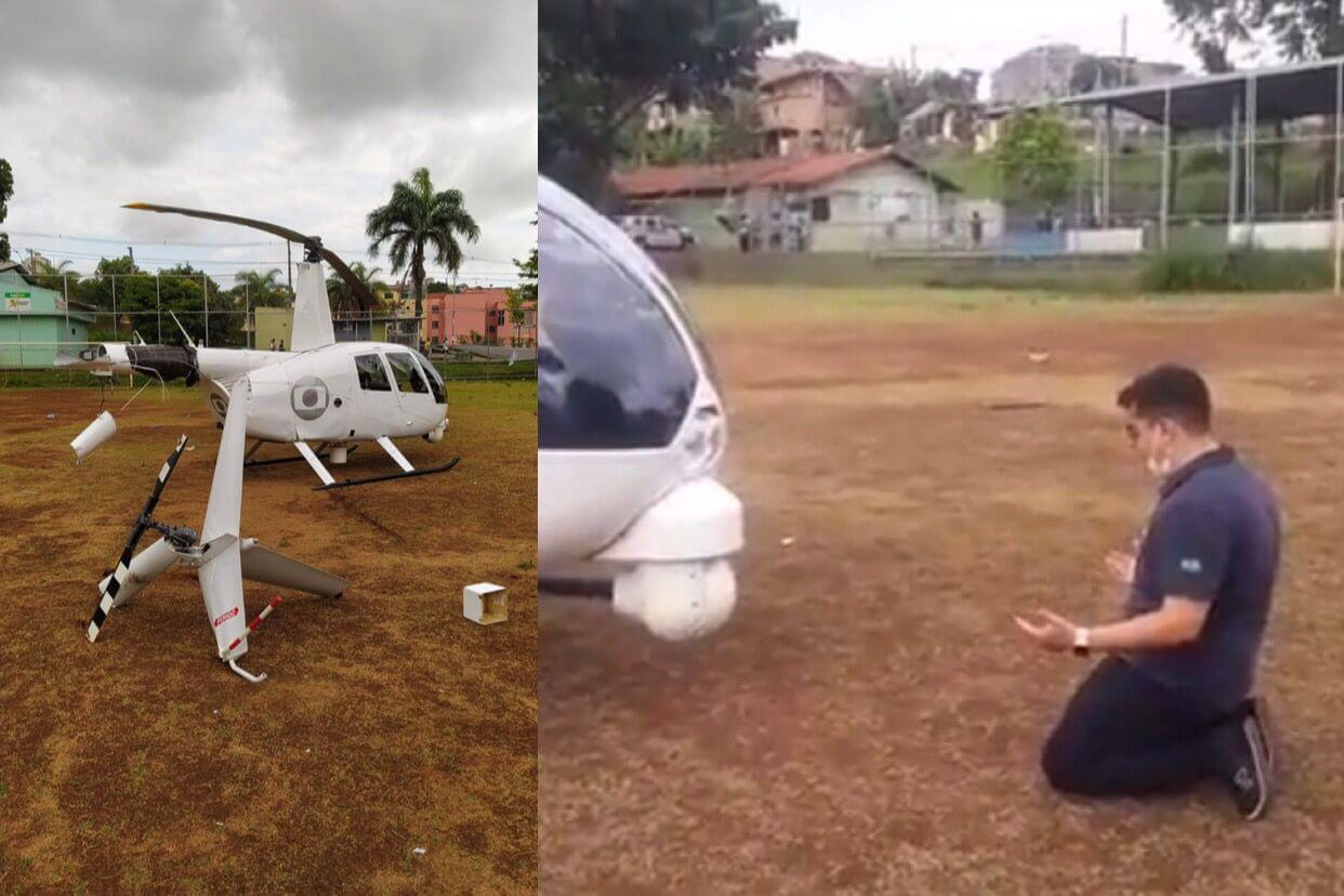 De acordo com o piloto Dudu Barbatti, que operava a aeronave, o helicóptero estava em altitude e velocidade recomendadas e, aparentemente, houve uma perda na potência. Parte da cauda da aeronave se partiu por conta do impacto do pouso, quando o rotor – a hélice do helicóptero – tocou o chão. Os bombeiros foram ao local para prevenção contra o risco de incêndio e explosão.