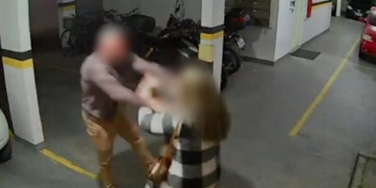 Já do lado de dentro, na garagem do edifício, ele volta a empurrá-la diversas vezes e, minutos depois, tira um revólver da cintura. É neste momento que aparece o policial, morador do condomínio em que ocorreu a briga.