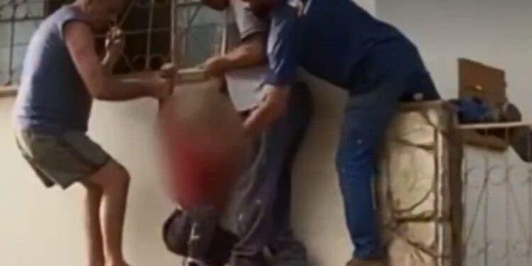Para que o menino conseguisse sair de casa pela janela, os vizinhos quebraram parte da grade e o puxaram.